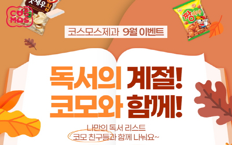 코스모스제과 가을독서 SNS 이벤트 진행 9월 25일까지 진행 관리자(너츠)2025-09-19T14:39:39+09:002025. 09. 19|Categories: 보도자료| 상세보기